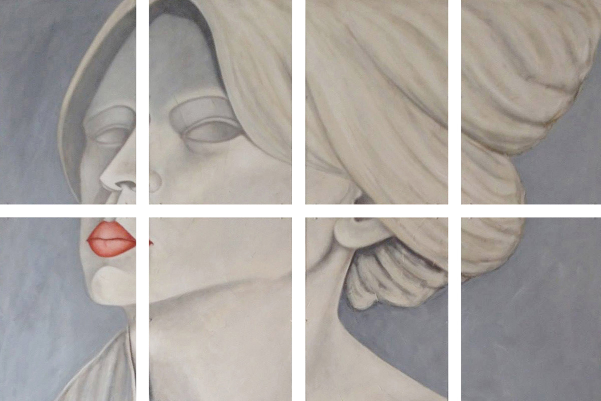 Nonostante la ricercata incoerenza e instabilita' visiva, quale paradigma dell' oggi, generata dal mescolarsi delle parti e dal moto dei singoli elementi, l'artista non rinuncia ad esercitare una volonta' di controllo, metafora dell'ingegno umano, che si esplica mediante la modularita' ortogonale di derivazione ippodamea (12). La maglia evidenzia una progettazione di impianto, garantisce un efficace governo sul caso ed e' un reverenziale omaggio ad alcune leggi della natura che dalla materia incoerente e amorfa generano cristalli dalle forme geometriche pure. "Sospensione", opera site specific, nel corso dell'inaugurazione sara' oggetto di un intervento da parte dell'artista che con gesto simbolico "liberera'" le parti. Dalla condizione originaria dei soggetti rappresentati, statica e leggibile si passa ad una instabile e caotica. Le due figure si mescolano visivamente, ma anche concettualmente.
